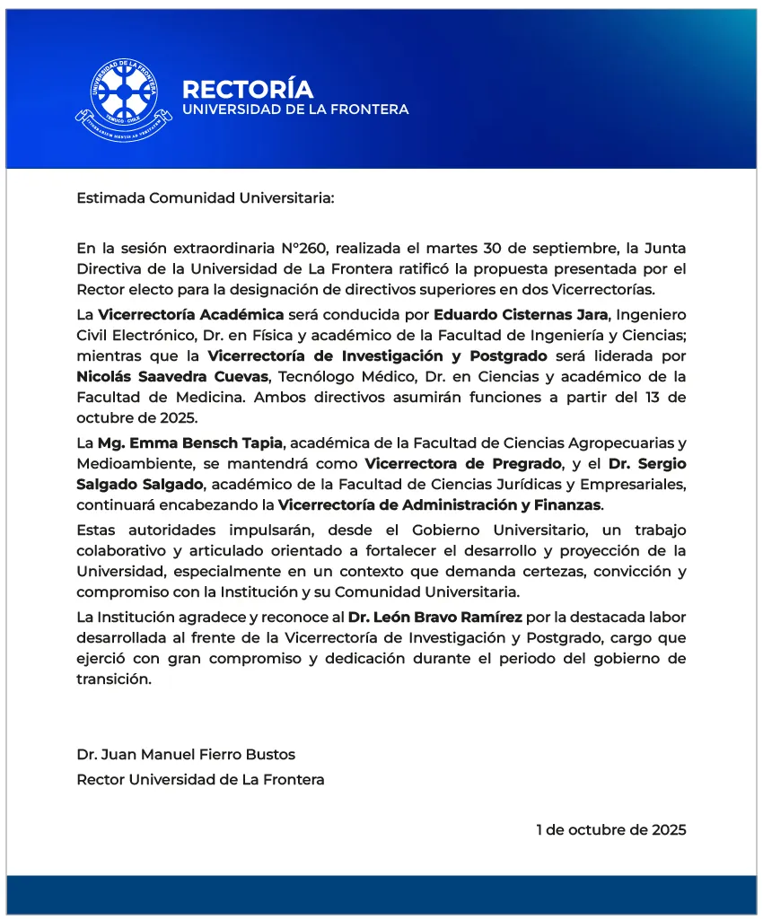 Portada » Comunicado Rectoría sobre designación de Directivos Superiores en Vicerrectorías
